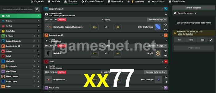O xx77 oferece uma grande seleção de opções de apostas em e-sports com probabilidades competitivas